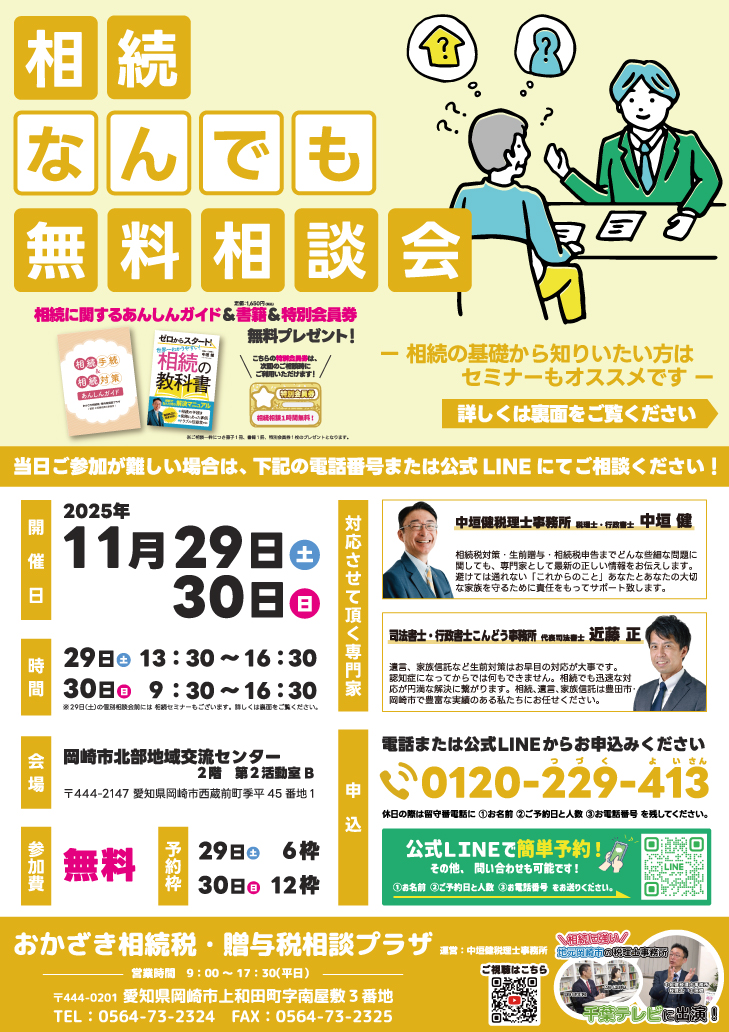 相続なんでも相談会(予約優先・無料)